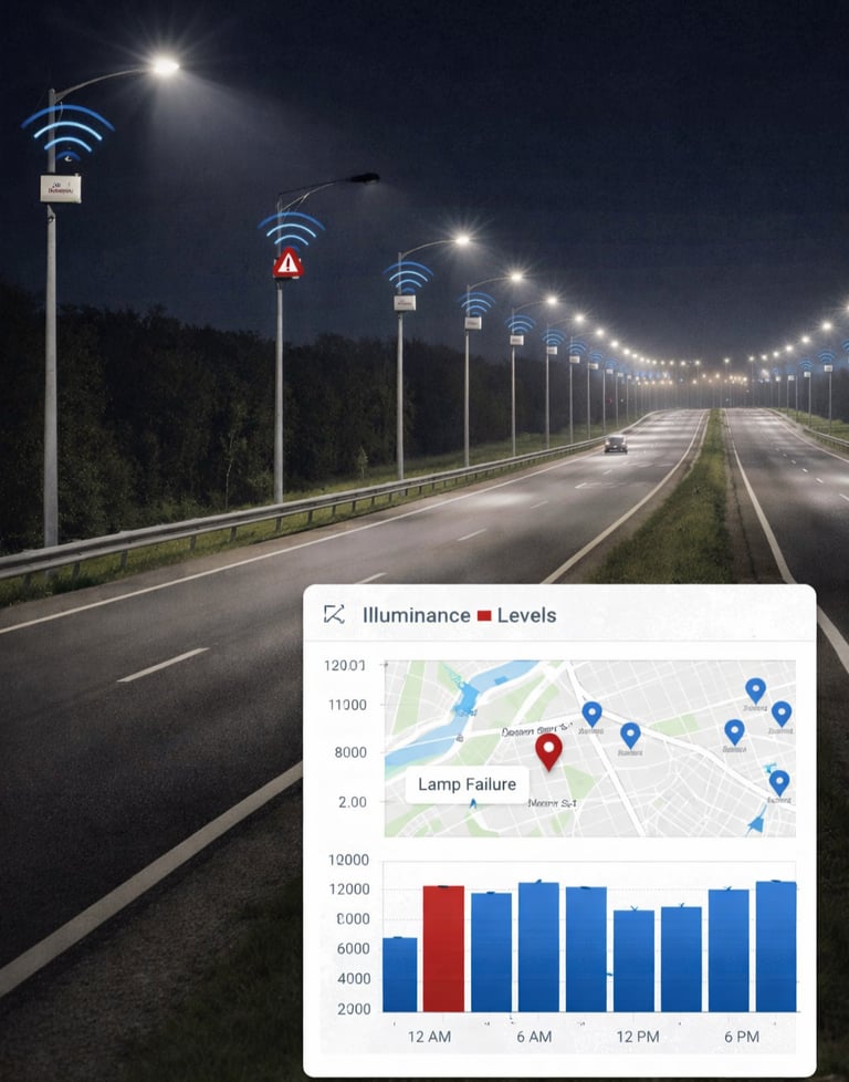 Illuminance monitoring solutions that measure light intensity and GPS location, helping assess lamp health and reduce maintenance and operating costs.